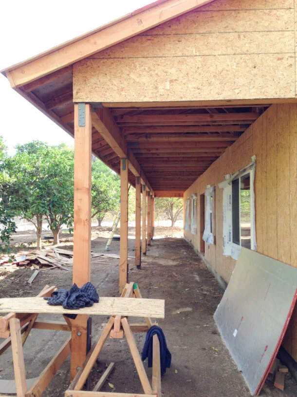 There are 70ft long covered porches on both the front and back of the house, and as you can see, we kept several rows of orange trees just steps from the porch. Can't wait to add a few black rocking chairs and benches when we're moved in!