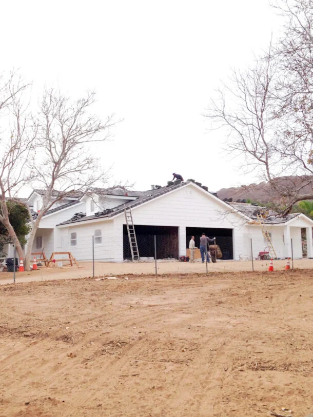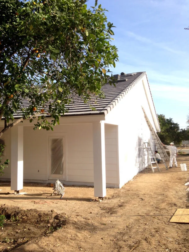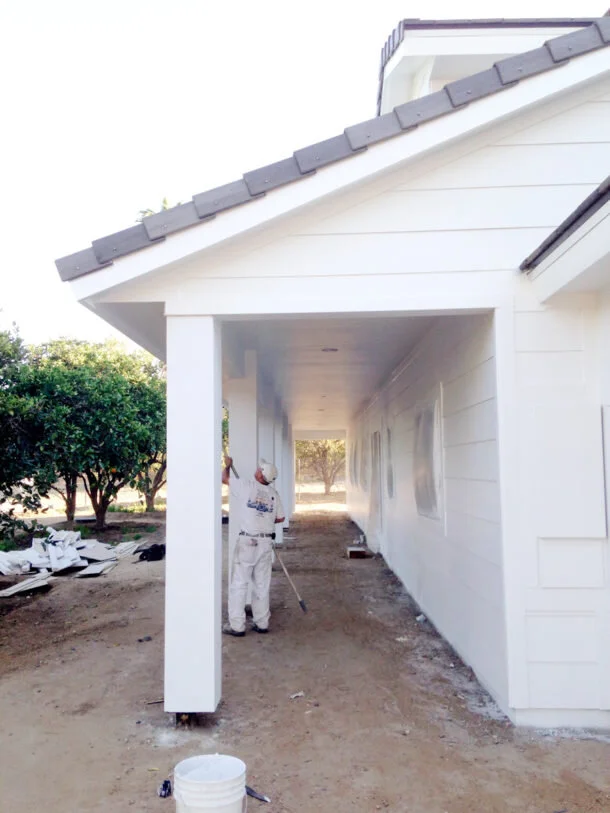 Below is the back of the house where the master bedroom and bath suite are located, and the amazing painters working away.